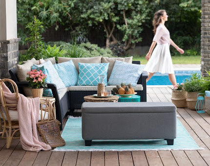 Благодаря стойкому полипропилену цвета не выгорают на солнце и не бледнеют со временем. Чехлы на подушках выполнены из плотной ткани, так же устойчивой к атмосферным явлениям.